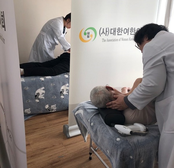 지난 21일 기준 속초에 있는 3구역의 임시 구호소 중 여한의사회는 LH연수원과 NH연수원을 방문했다. 김영선 회장을 비롯해 김은기 부회장, 박소연 부회장, 송정오 부회장, 박선영 국제이사, 민예은 총무이사 등 임원진으로 6명으로 구성된 여한 봉사단은 3명씩 2팀으로 나뉘어 진료소를 설치했다.