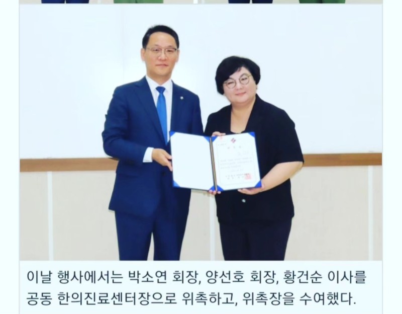이날 행사에서는 박소연 회장, 양선호 회장, 황건순 이사를 공동 한의진료센터장으로 위촉하고, 위촉장을 수여했다. |